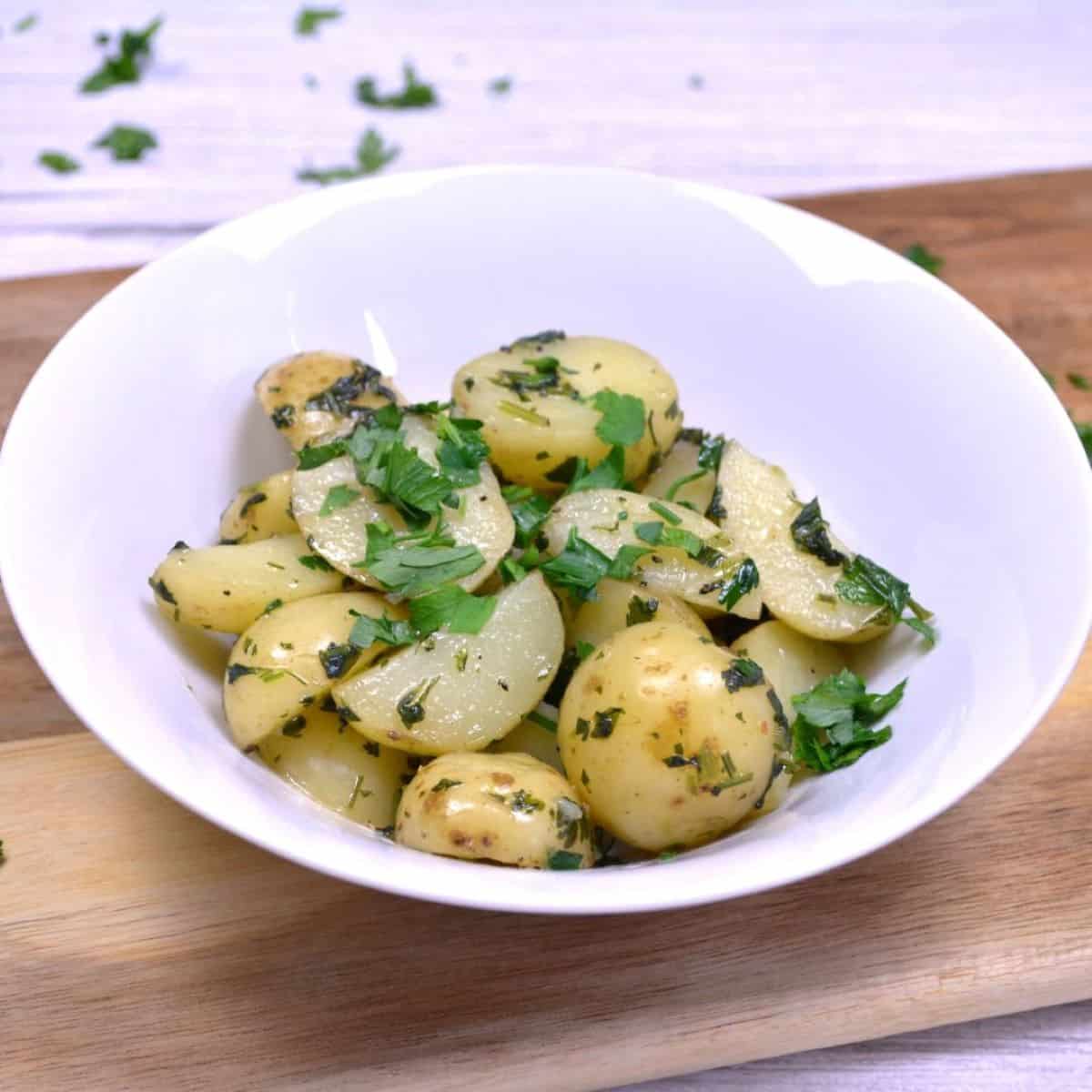 A simple, 3-ingredient Hungarian parsley potato recipe. These tender baby potatoes are sautéed and simmered in stock for a deeper flavor than traditional boiled potatoes. Perfect for a quick, healthy side dish!